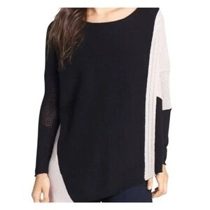 Velvet By Graham & Spencer Black Beige Asymmetrical Cashmere Sweater Size S
