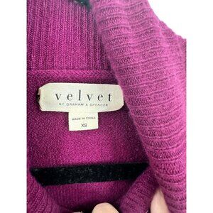 Velvet By Graham & Spencer Ellie 100% Cashmere Turtleneck Cowl Sweater XS Purple