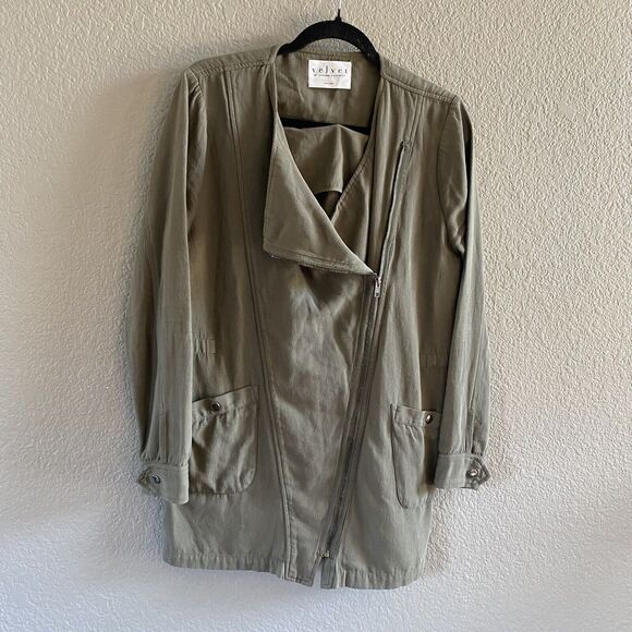 Velvet By Graham Spencer Jacket Womens Small Green Moto Utility Military Army