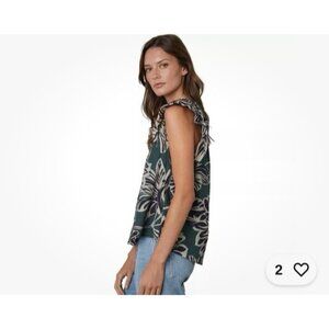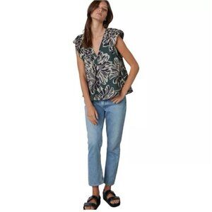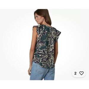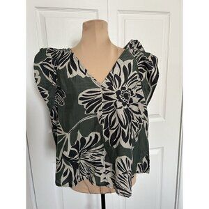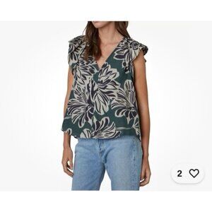 Velvet By Graham & Spencer Kadence Top Green Floral V-Neck Cap Sleeve Size XS