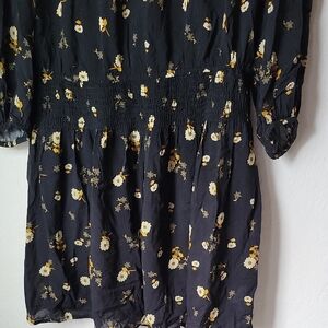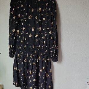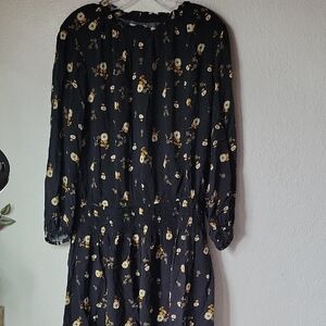 Chic black dress with floral design. Long sleeves for elegant style. Ideal for versatile wear. excellent condition