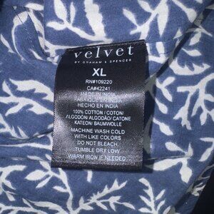 Velvet By Graham & Spencer Mens Blue Fern Print Cotton Button Up Shirt Sz XL NEW