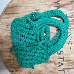 green knit crochet mini Bennie bag by velvet by Jenny Graham. had an attached drawstring bag inside the small bag itself. Preloved condition. All sections of interest as well any known flaws have been documented in the photos and noted as thoroughly as possible. if there are no known flaws, none will be noted. Please feel free to ask any questions before purchase 🙂. Please see photos for measurements shown. the green is hard to capture but most closely resembles last picture