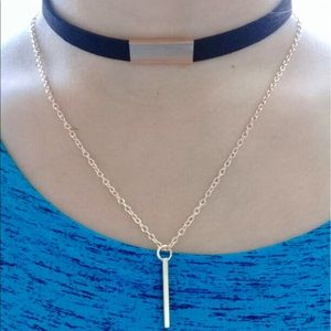 Velvet Choker Dangling Bar Pendant Chain Necklace