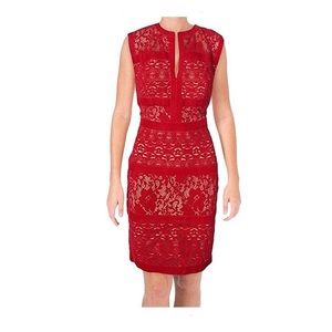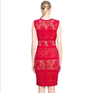 Velvet lace sheath dress with nude built in paneling. Hidden zipper in back. Dry clean only. Only worn once and in perfect condition. This item is a hard find so get it while you can!!!