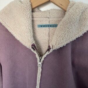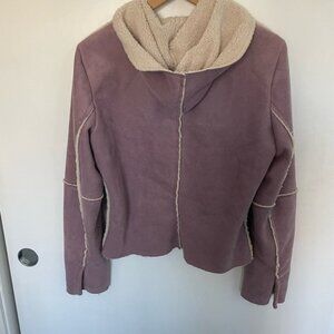 Velvet Faux Suede Fleece Lined Zippered Jacket Purple Size Large. Great condition! Has a hood