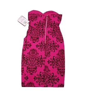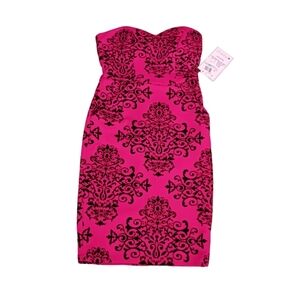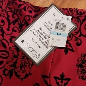 Macy's B. Darlin Scarlet Red & Black Velvet Flocked Strapless Dress 5/6 NWT