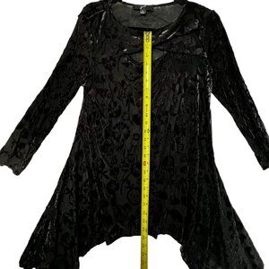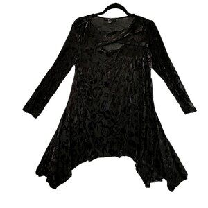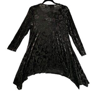 Velvet Floral Burnout Asymmetric Tunic NWT Cut Out Long Sleeve Black Sheer Med