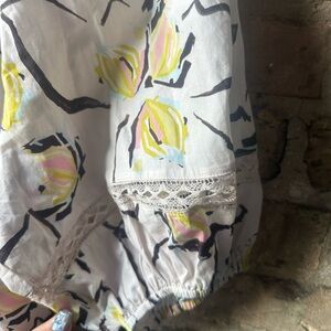 Stylish off-shoulder blouse with floral pattern. Features vibrant yellow and black accents. Perfect for casual wear.