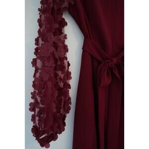 Embrace elegance with this Velvet Flower Sleeve Dress in a flattering size medium. The mid-length design offers a perfect balance between comfort and style, making it suitable for many occasions. Delicate floral layers on the sleeves add a graceful touch of femininity, while the long sleeves enhance its sophisticated silhouette. The tie waist detail with a charming bow allows you to adjust the fit to your preference, accentuating your natural shape. This dress combines thoughtful design with classic appeal, supporting your confident and stylish presence wherever you go.