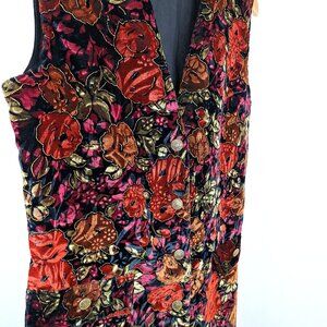 Velvet Flower Vest Waistcoat Size S. Button Up Whimsigoth Fairy Grunge Tapestry