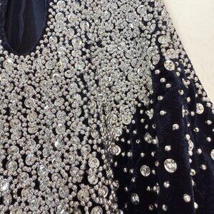 Velvet Formal Gown Dress Sequin Beaded Blue Special Occasion Cheongsam Small