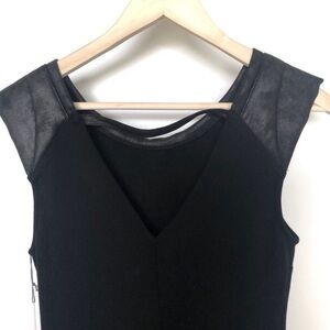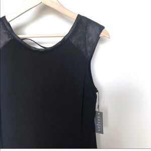 -Sleeveless with padded shoulders in a monochromatic faux suede