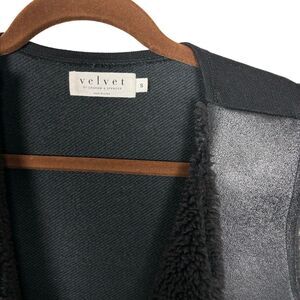 * Velvet Graham Spencer Black Faux Leather Vest Women's Small Sherpa Lined