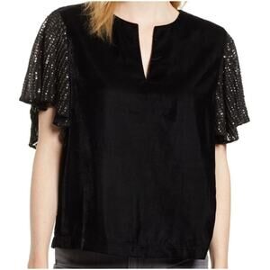 Velvet Graham & Spencer Black Velvet Sequin Flutter Sleeve Top Size Small