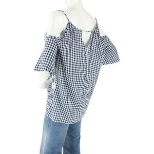 Velvet Graham & Spencer Gingham Checker Plaid Cottagecore Cold Shoulder Top Blouse NWT
