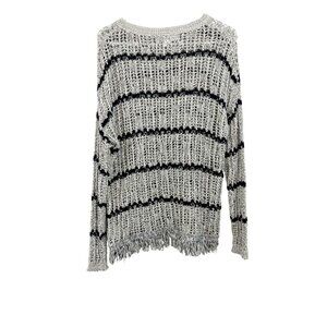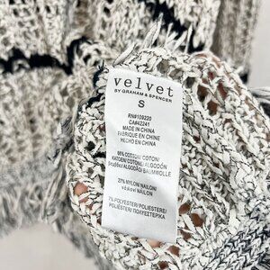 Velvet Graham & Spencer White & Black Open Knit Fringe Pullover Sweater SMALL