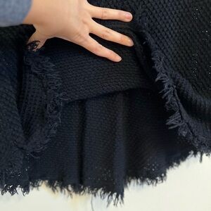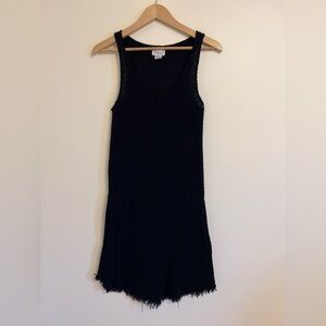 Velvet Graham & Spencer Womens Knit Dress Small Black Waffle Stretch Fringe USA