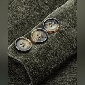Step out in style with this elegant velvet green blazer. Perfect for any occasion, this jacket adds a touch of sophistication to your wardrobe.
