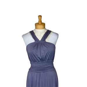 Velvet Halter Knit Dress Side Ruching Fit and Flare Purple Size Large