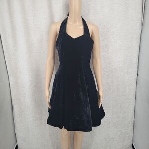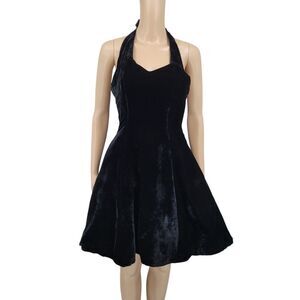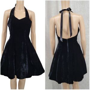 Velvet Halter Mini Dress Black Gothic Tulle Crinoline Petticoat 80s 80's Vintage