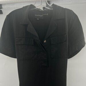 Velvet Heart Belted Shift Dress Midi Short Sleeve Black Size Small