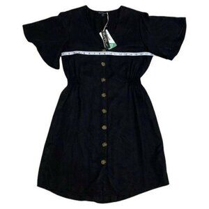 Velvet Heart Black V-Neck Flutter Sleeve Front Button Dress Size S
