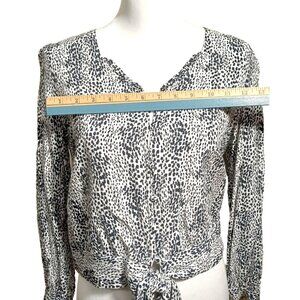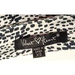 This Velvet Heart Black and White Patterned Blouse is perfect for any stylish woman. With a tie at the waist and a button at the front, this size XS blouse is a wardrobe must-have.