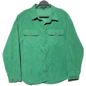 Velvet Heart Button Up Top Women's Size XL Green Corduroy Long Sleeves