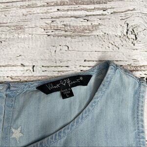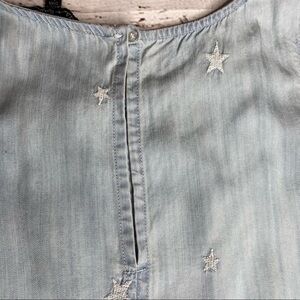 In like new condition Velvet Heart chambray star embroidered peplum top with keyhole in back . 100% tencel.