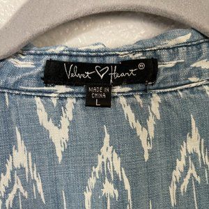 Excellent Preowned Condition Velvet Heart Collared Shirt Dress/ Size L / Light Blue, Denim Colored, White, Patterned, Chevron