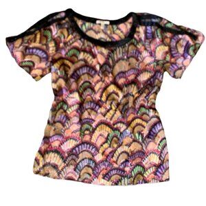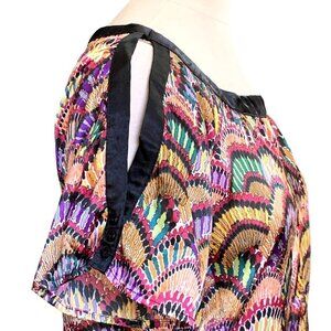 Velvet Heart Colorful Silky Slit Shoulder Short Sleeve Top Sz S #10A