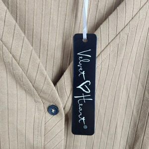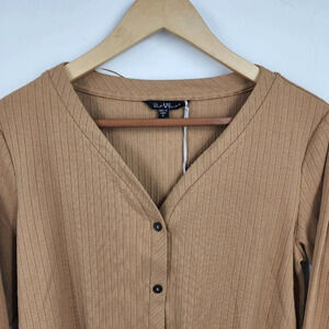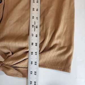 Velvet Heart Cori V-Neck Button Tie Front Ribbed Top In Camel Womens Size S NWT