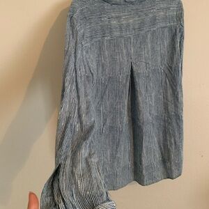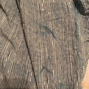 This beautiful striped button down is the brand velvet hearts and is a size XL. Beautiful accent embroidery and shades of blue to make this the perfect closet edition . Snatch this piece up before it’s gone!! It was washed with a clothing item that bled so it has small blue stains in a few areas (as shown in photos) but they may be able to come out and can still look beautiful when worn😍