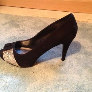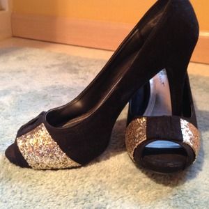 Beautiful black velvet heels with gold glitter accents. Perfect for girls night out! Great condition, worn only for a few hours!