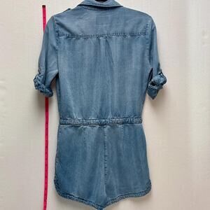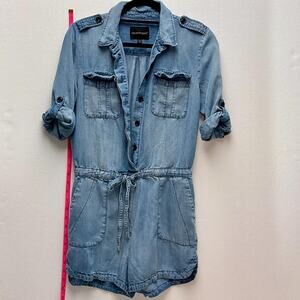 This stylish Velvet Heart denim romper is the perfect blend of casual and chic! Featuring a soft, lightweight chambray fabric, this romper offers a comfortable, relaxed fit with adjustable drawstring waist for a flattering silhouette. It has functional chest pockets, side pockets, and rolled short sleeves with button tabs, giving it a utility-inspired look. The button-up front allows for versatile styling—wear it open over a tank for a layered look or buttoned up for a sleek outfit.