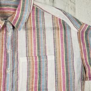 Velvet Heart Linen Blend Multicolored Striped Button Up Blouse Women's Medium