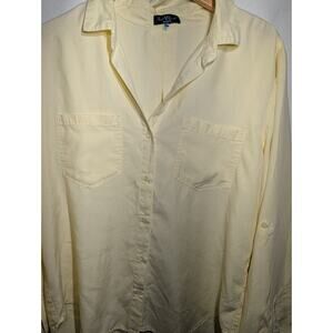 Velvet Heart Los Angeles women's Sirena Butter Yellow Button Up Hi Low Hem Sz L. Size tag has been cut but top measures 22". Top could be worn by other sizes depending desired looseness.