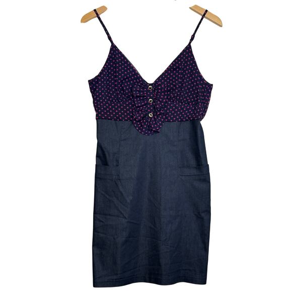 Velvet Heart Polka Dot Ruffle Button Babydoll Dress Size M Empire Waist Retro