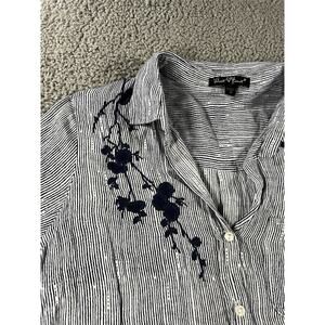 Velvet Heart Shirt Women Medium Long Sleeve Roll Tab Embroidered Nautical Boho