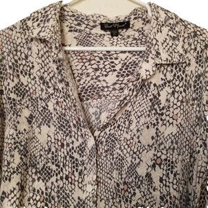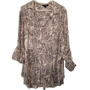 Velvet Heart Shirt Womens 2X Animal Print Snake Cream Gray Long Sleeve Button