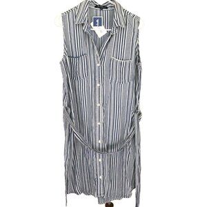 Velvet Heart Sleeveless Shirt Dress Striped Blue Belted Shift Size Medium Summer