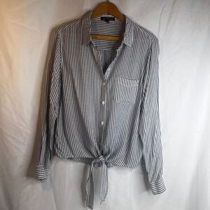 Velvet Heart Striped Tie Waist Super Soft Button Front Shirt Size Medium