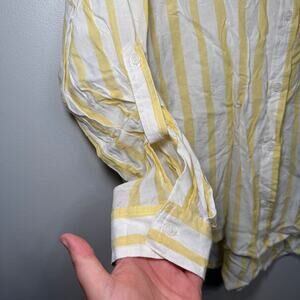 Velvet Heart Women's Button Front Long Sleeve Striped Blouse Yellow Size Medium