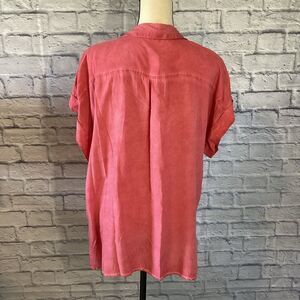 Elevate your wardrobe with this stylish pink button-up top. Perfect for any occasion, this top offers both comfort and elegance.
