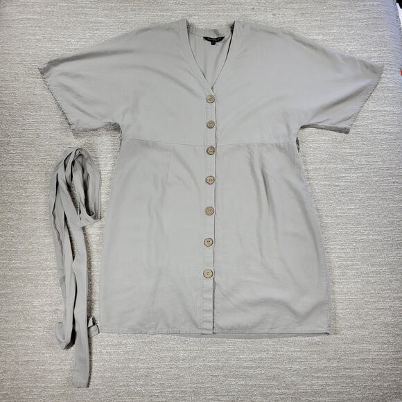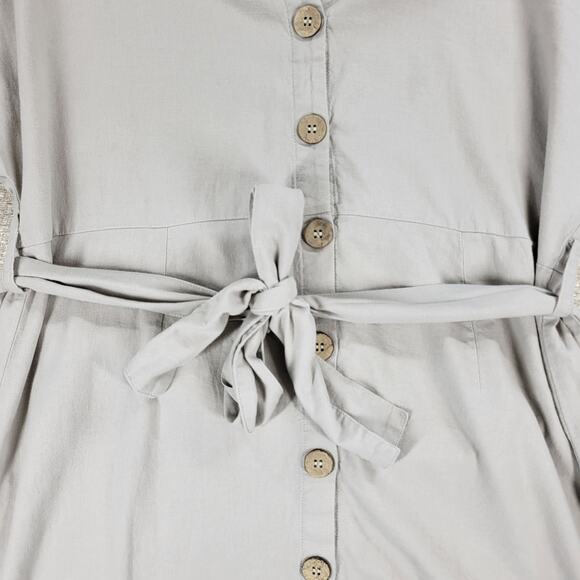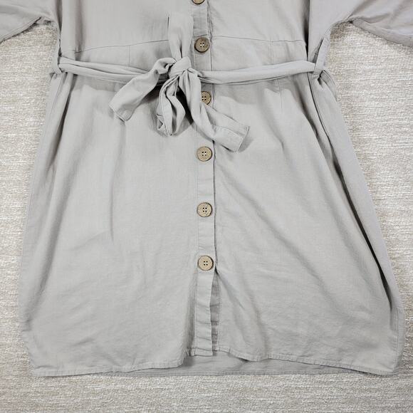 Velvet Hearts Shirt Dress Womens Large Cream Linen Blend Belted Button Down Mini