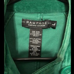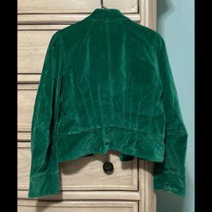 Emerald green velvet jacket. Rampage Clothing Company. Size Large but fits more like a Medium. From a pet and smoke free home.