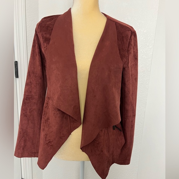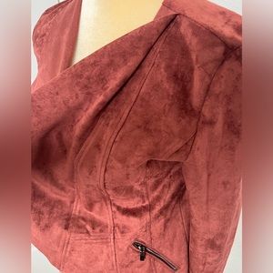 Velvet Maroon/rust colored jacket. Has cute zippers on the sides. Great for dressing up any outfit! New with original tags, never been worn.