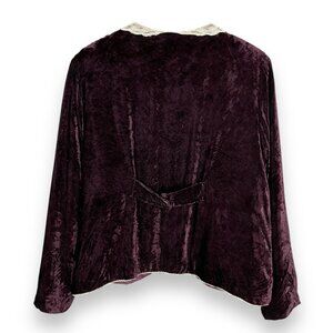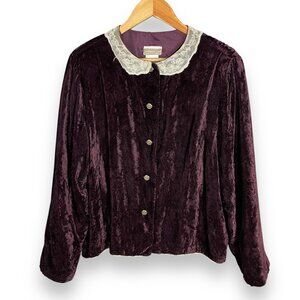 Velvet Jacket Lace Collar Purple Women Button Up Victorian Size Large Delicate