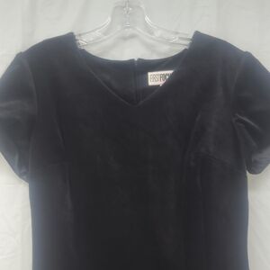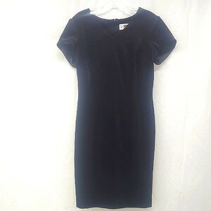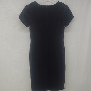 Velvet Little Black Dress Midi V Neck Zippered Lined Sheath Short Sleeve Stretch